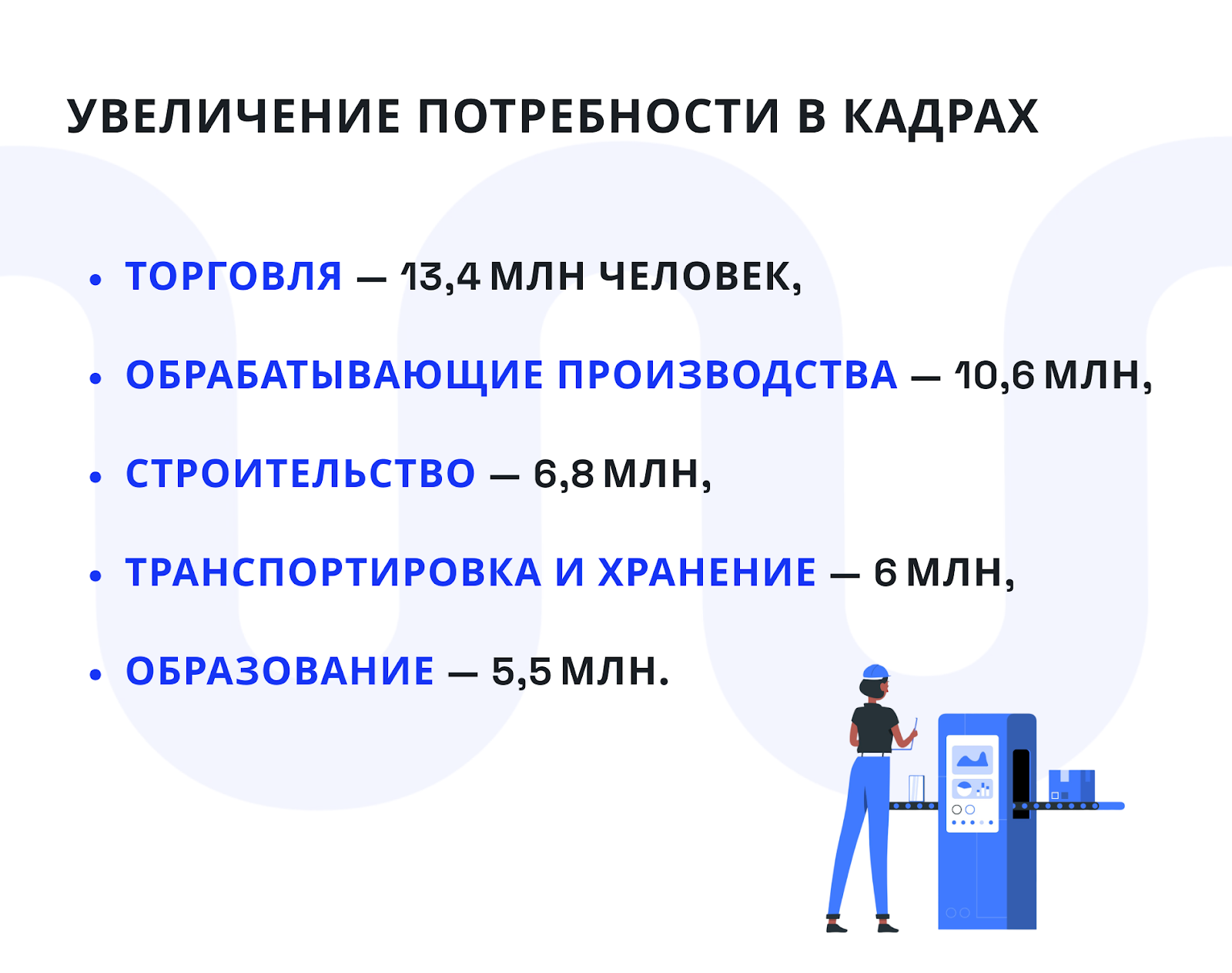 Такой масштаб указывает на системную потребность в работниках массовых профессий, а не только в узких высококвалифицированных специалистах, что становится вызовом для HR‑служб компаний и государственной политики в области занятости.